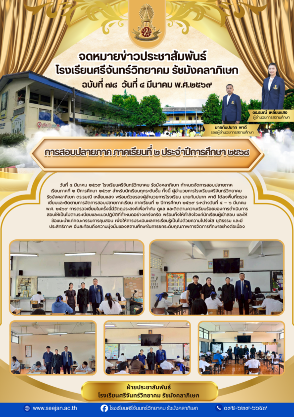การสอบปลายภาค ภาคเรียนที่ ๒ ประจำปีการศึกษา ๒๕๖๘ 4 มีนาคม 2026เจษฎากร สร้อยมีจดหมายข่าว/กิจกรรมต่างๆ Post Views: 4FacebookFacebookXXLINELineShare this:Click to share on Twitter (Opens in new window)Click to share on Facebook (Opens in new window)Related