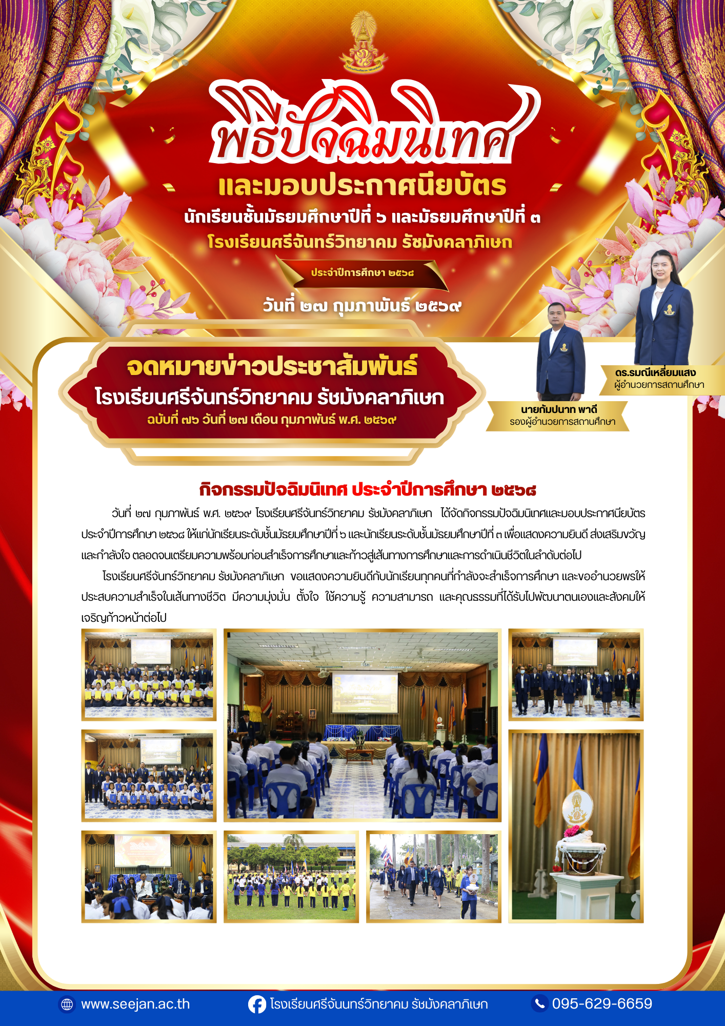 กิจกรรมปัจฉิมนิเทศและมอบประกาศนียบัตร ประจำปีการศึกษา ๒๕๖๘ นักเรียนระดับชั้นมัธยมศึกษาปีที่ ๖ และนักเรียนระดับชั้นมัธยมศึกษาปีที่ ๓ 28 กุมภาพันธ์ 2026เจษฎากร สร้อยมีจดหมายข่าว/กิจกรรมต่างๆ Post Views: 4FacebookFacebookXXLINELineShare this:Click to share on Twitter (Opens in new window)Click to share on Facebook (Opens in new window)Related