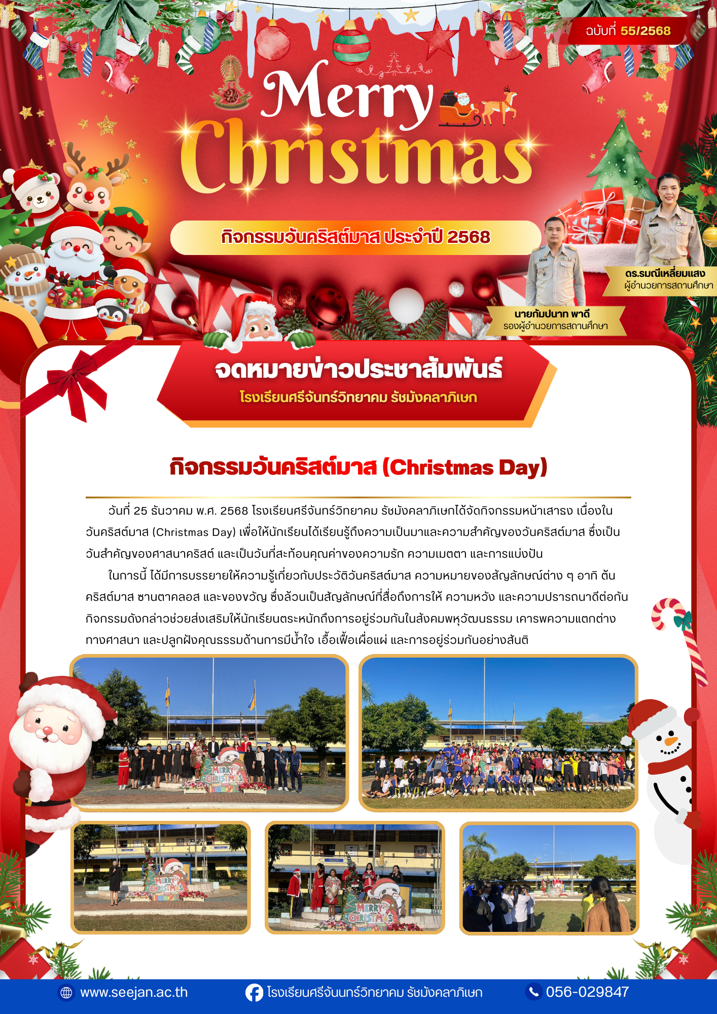 กิจกรรมวันคริสต์มาส (Christmas Day) 25 ธันวาคม 2025เจษฎากร สร้อยมีจดหมายข่าว/กิจกรรมต่างๆ Post Views: 2FacebookFacebookXXLINELineShare this:Click to share on Twitter (Opens in new window)Click to share on Facebook (Opens in new window)Related