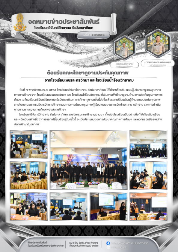 ต้อนรับ คณะผู้บริหาร ครู และบุคลากรทางการศึกษา จาก โรงเรียนเพชรละครวิทยา และ โรงเรียนน้ำร้อนวิทยาคม ที่เดินทางเข้าศึกษาดูงานด้าน การประกันคุณภาพการศึกษา 10 พฤศจิกายน 2025เจษฎากร สร้อยมีจดหมายข่าว/กิจกรรมต่างๆ Post Views: 2FacebookFacebookXXLINELineShare this:Click to share on Twitter (Opens in new window)Click to share on Facebook (Opens in new window)Related