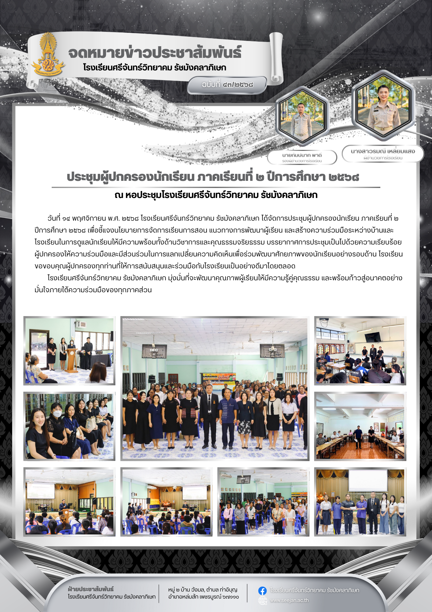 ประชุมผู้ปกครองนักเรียน ภาคเรียนที่ ๒ ปีการศึกษา ๒๕๖๘ 17 พฤศจิกายน 2025เจษฎากร สร้อยมีจดหมายข่าว/กิจกรรมต่างๆ Post Views: 5FacebookFacebookXXLINELineShare this:Click to share on Twitter (Opens in new window)Click to share on Facebook (Opens in new window)Related