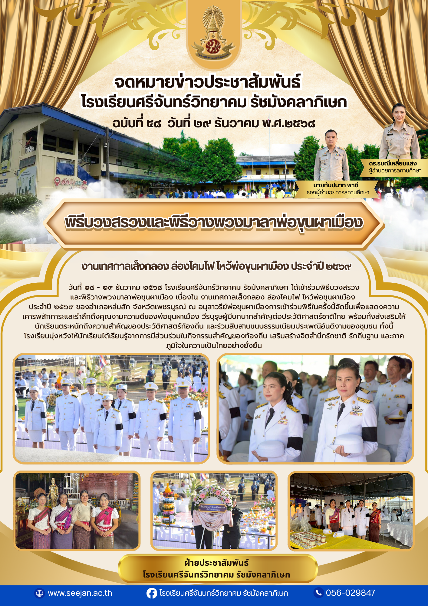 พิธีบวงสรวงและพิธีวางพวงมาลาพ่อขุนผาเมือง เนื่องใน งานเทศกาลเส็งกลอง ล่องโคมไฟ ไหว้พ่อขุนผาเมือง ประจำปี ๒๕๖๙ 29 ธันวาคม 2025เจษฎากร สร้อยมีจดหมายข่าว/กิจกรรมต่างๆ Post Views: 3FacebookFacebookXXLINELineShare this:Click to share on Twitter (Opens in new window)Click to share on Facebook (Opens in new window)Related