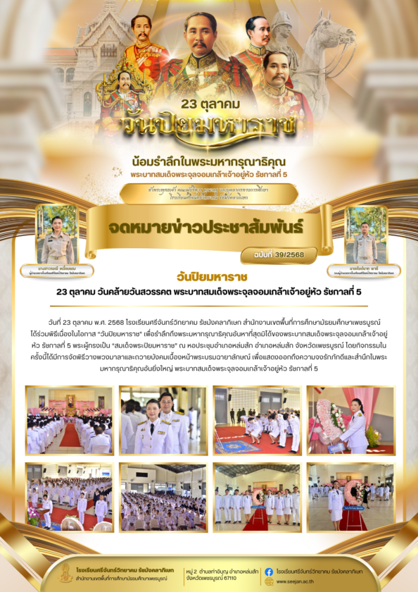 พิธีวางพวงมาลา และถวายสักการะ เพื่อน้อมรำลึกถึงพระมหากรุณาธิคุณพระบาทสมเด็จพระจุลจอมเกล้าเจ้าอยู่หัว รัชกาลที่ ๕ 24 ตุลาคม 2025เจษฎากร สร้อยมีจดหมายข่าว/กิจกรรมต่างๆ Post Views: 3FacebookFacebookXXLINELineShare this:Click to share on Twitter (Opens in new window)Click to share on Facebook (Opens in new window)Related
