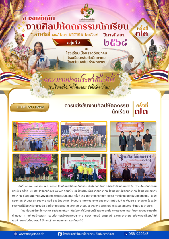 แข่งขัน “งานศิลปหัตถกรรมนักเรียน ครั้งที่ ๗๓ ประจำปีการศึกษา ๒๕๖๘” กลุ่มที่ ๒ ณ โรงเรียนเมืองราดวิทยาคม โรงเรียนหล่มสักวิทยาคม โรงเรียนหล่มเก่าพิทยาคม 5 กุมภาพันธ์ 2026เจษฎากร สร้อยมีจดหมายข่าว/กิจกรรมต่างๆ Post Views: 5FacebookFacebookXXLINELineShare this:Click to share on Twitter (Opens in new window)Click to share on Facebook (Opens in new window)Related