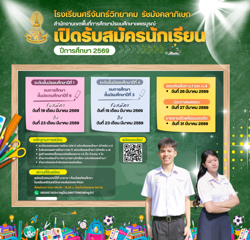 โรงเรียนศรีจันทร์วิทยาคม รัชมังคลาภิเษก เปิดรับสมัครนักเรียนใหม่ ปีการศึกษา 2569 22 กุมภาพันธ์ 2026เจษฎากร สร้อยมีข่าวประชาสัมพันธ์ (public relations) Post Views: 5FacebookFacebookXXLINELineShare this:Click to share on Twitter (Opens in new window)Click to share on Facebook (Opens in new window)Related