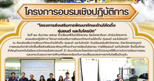 โครงการอบรมเชิงปฏิบัติการ “โครงการส่งเสริมการพัฒนาทักษะด้านโค้ดดิ้ง หุ่นยนต์ และไมโครบิท” วันที่ 20 เดือน ธันวาคม พ.ศ. 2568 20 ธันวาคม 2025เจษฎากร สร้อยมีจดหมายข่าว/กิจกรรมต่างๆ