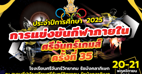 การเเข่งขันกีฬาภายใน ศรีจันทร์เกมส์ ประจำปีการศึกษา 2568 17 พฤศจิกายน 202517 พฤศจิกายน 2025เจษฎากร สร้อยมีข่าวประชาสัมพันธ์ (public relations)