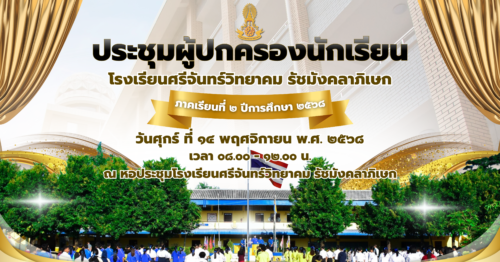 ประชุมผู้ปกครองนักเรียน ภาคเรียนที่ ๒ ปีการศึกษา ๒๕๖๘ 17 พฤศจิกายน 2025เจษฎากร สร้อยมีจดหมายข่าว/กิจกรรมต่างๆ