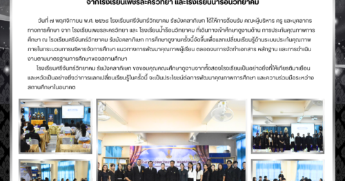 ต้อนรับ คณะผู้บริหาร ครู และบุคลากรทางการศึกษา จาก โรงเรียนเพชรละครวิทยา และ โรงเรียนน้ำร้อนวิทยาคม ที่เดินทางเข้าศึกษาดูงานด้าน การประกันคุณภาพการศึกษา 10 พฤศจิกายน 2025เจษฎากร สร้อยมีจดหมายข่าว/กิจกรรมต่างๆ