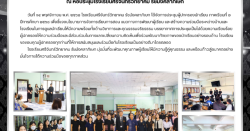 ประชุมผู้ปกครองนักเรียน ภาคเรียนที่ ๒ ปีการศึกษา ๒๕๖๘ 17 พฤศจิกายน 2025เจษฎากร สร้อยมีจดหมายข่าว/กิจกรรมต่างๆ
