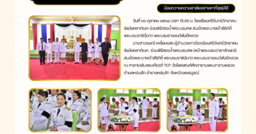 ธ สถิตในดวงใจตราบนิรันดร์ น้อมรำลึกในพระมหากรุณาธิคุณ สมเด็จพระนางเจ้าสิริกิติ์ พระบรมราชินีนาถ พระบรมราชชนนีพันปีหลวง ด้วยเกล้าด้วยกระหม่อม ขอเดชะ ข้าพระพุทธเจ้าผู้บริหาร ข้าราชการครู บุคลากทางการศึกษา และนักเรียน โรงเรียนศรีจันทร์วิทยาคม รัชมังคลาภิเษก 25 ตุลาคม 2025เจษฎากร สร้อยมีข่าวประชาสัมพันธ์ (public relations)